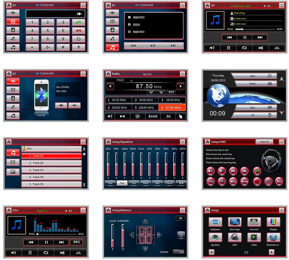 - Music Control: Song Up/Down, Fast Forward/Backward, Repeat